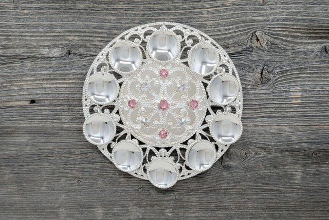 Vår versjon av rosesøljen med store løv, plate på baksiden og 9 stein på sølja.
