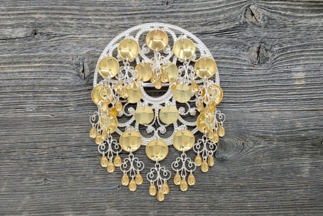 Sølje 61518 PrisNOK3 810,00 inkl. mva. Kjøp Del dette Produktinfo Tradisjonell rosesølje slik vi laget den før med 14 mm forgylte løv med trådkant og filigran heng. Diameter: 7,8 cm