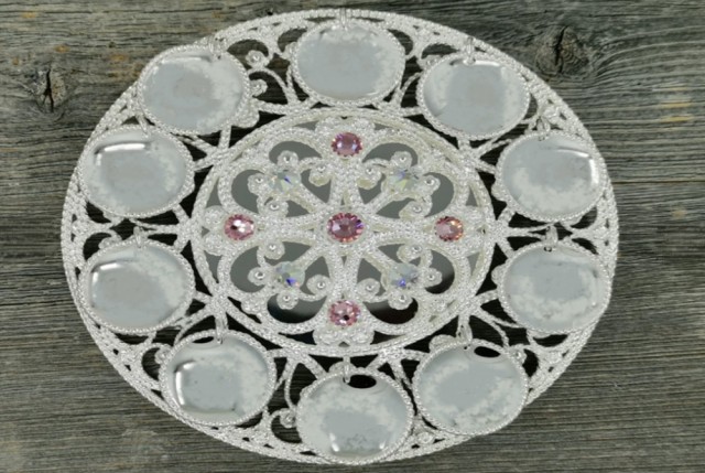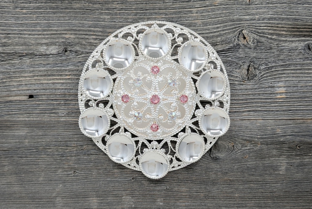 Vår versjon av rosesøljen med store løv, plate på baksiden og 9 stein på sølja.